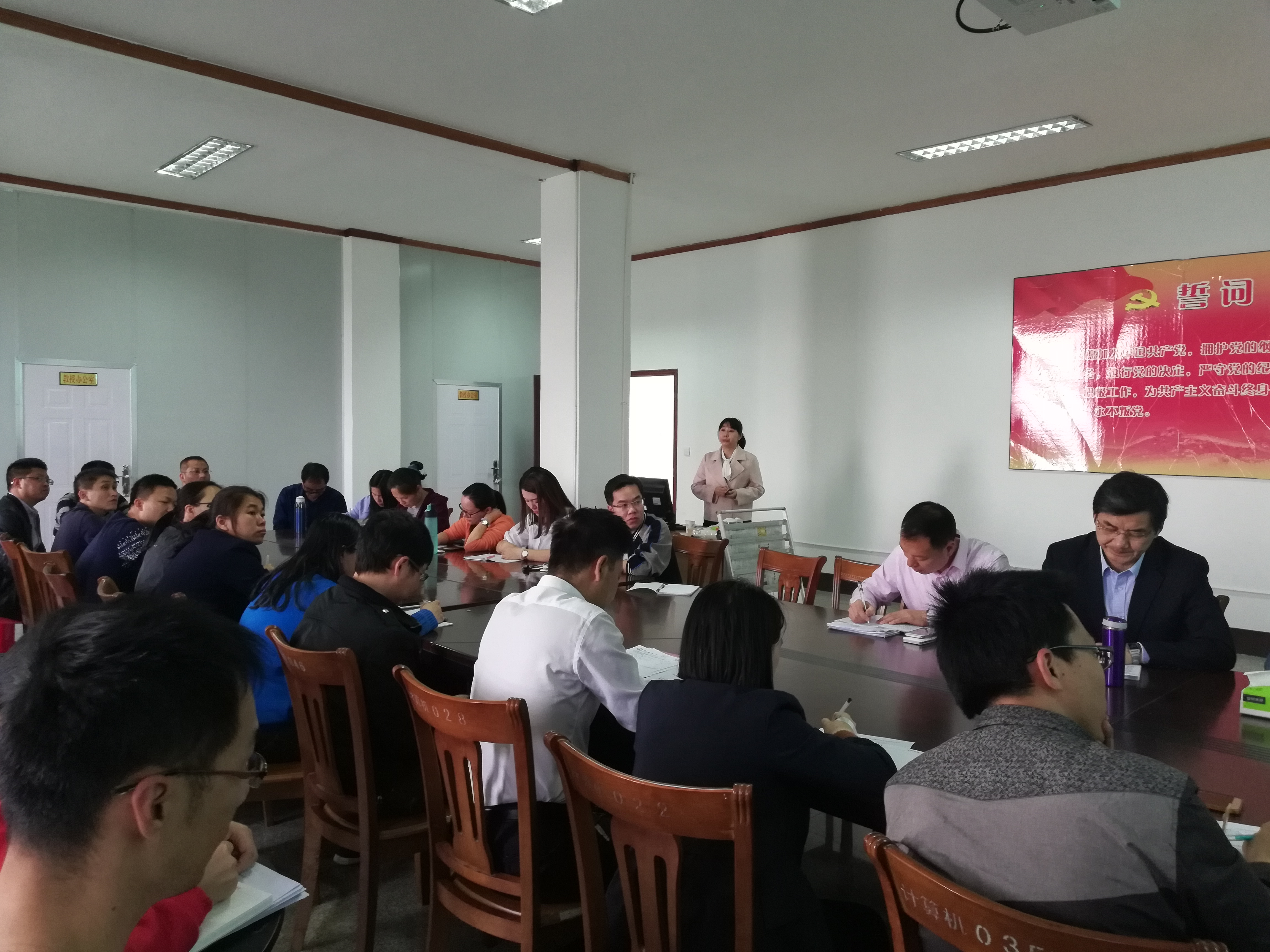 为了进一步明确教育教学工作的有关规范,学习教务部有关文件。4月18日下午,taptap在泽钏楼四楼召开教师教学交流会, 会议由学院党总支书记兼教学副院长曾凤生主持,教务部副主任郑秋莲主讲,全体教职工出席会议。