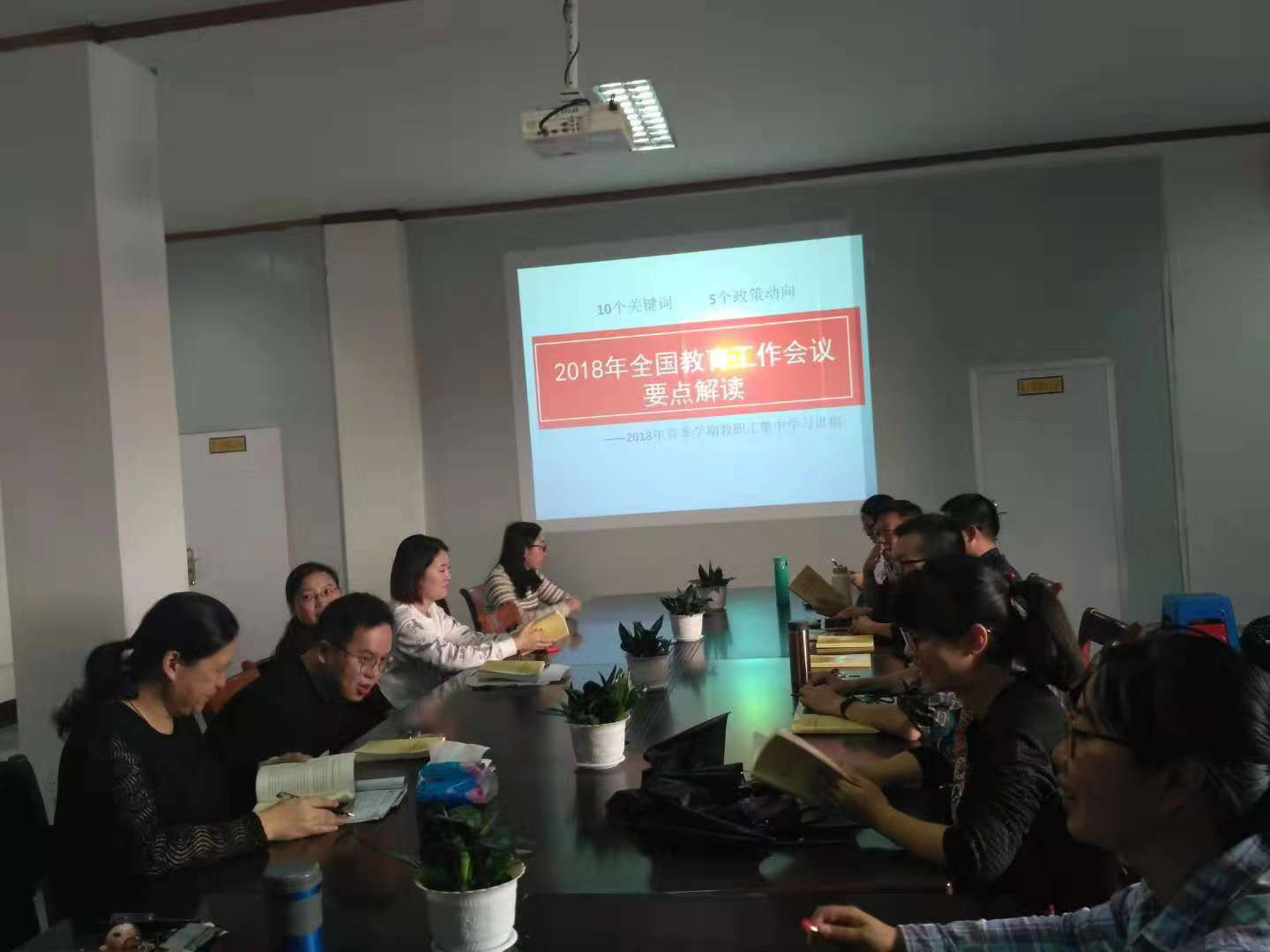 2018年10月24日下午3:00,taptap全体教工党员在郑燕娥书记的带领下,于泽川楼四楼会议室学习了全国教育工作会议相关要点。