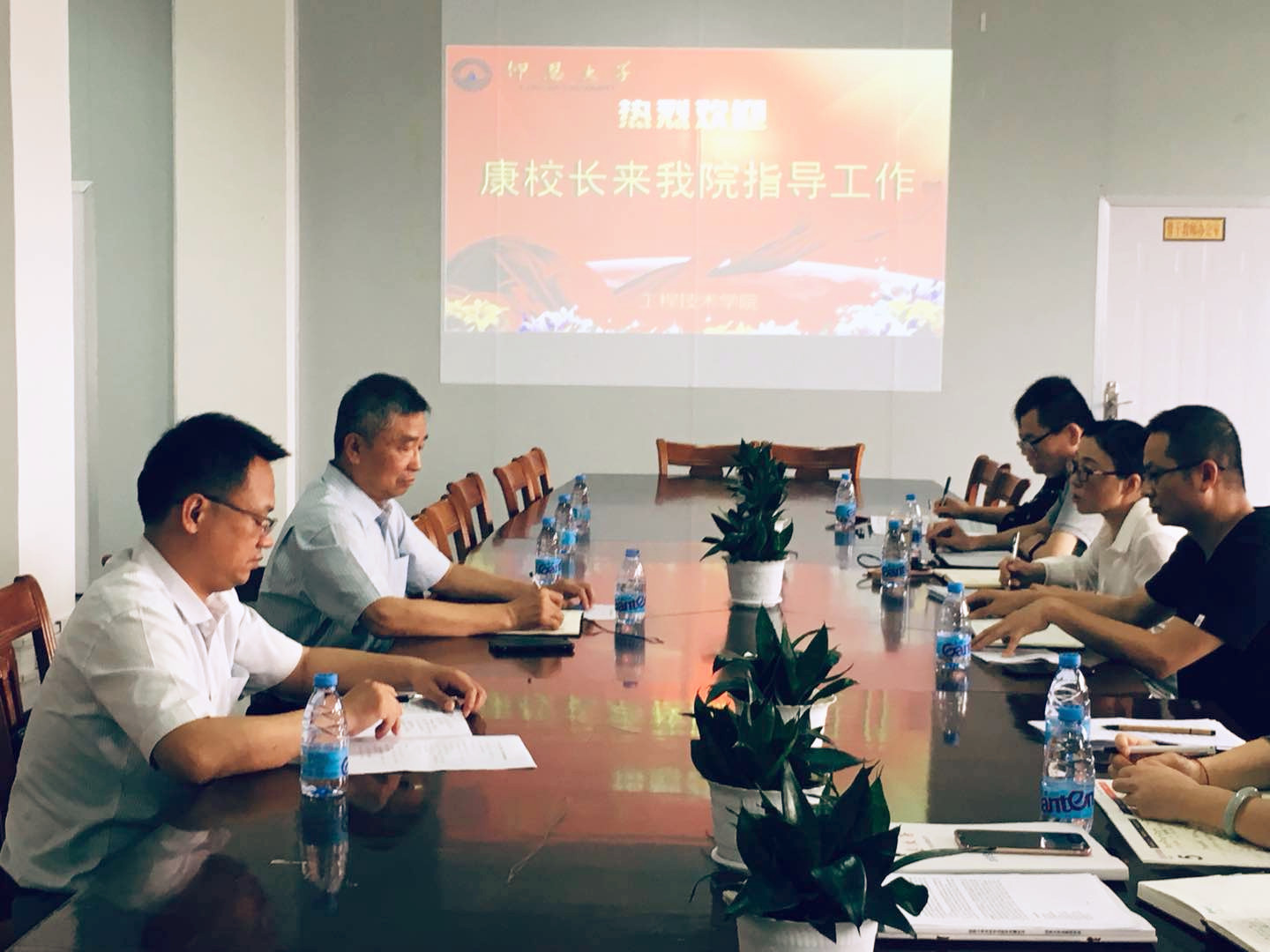 常务副院长金承勇从学科建设、专业建设、课程建设、教学研究、科研情况等几个方面向康龙校长汇报了学院整体情况;党总支书记曾凤生主要从师资队伍、师德师风、毕业生就业等方面汇报情况;吕思仁副书记汇报学生党建、学院学生评价等工作情况,并向康校长反馈从学生口收集的信息;教学副院长李影及各系部主任反馈了现阶段学院存在问题及今后发展思路。