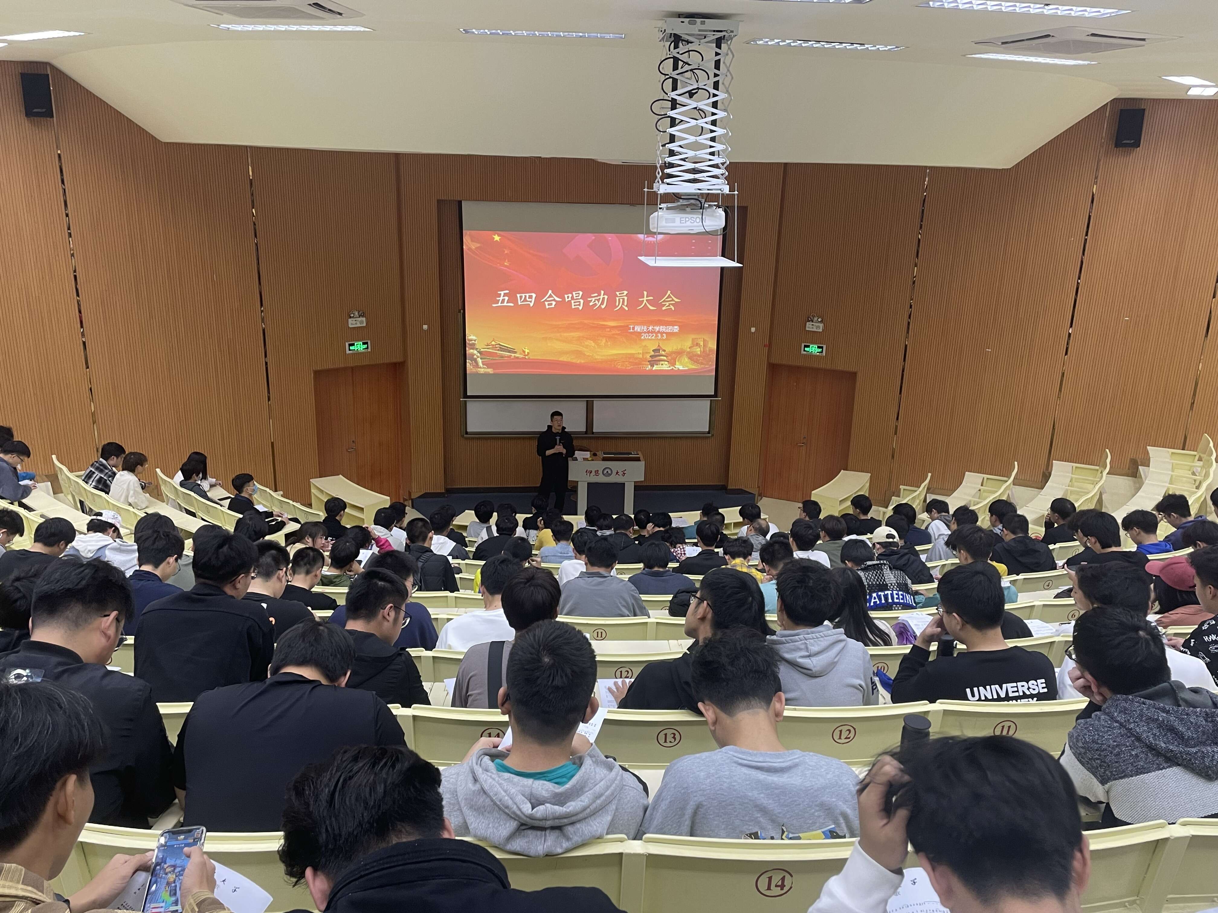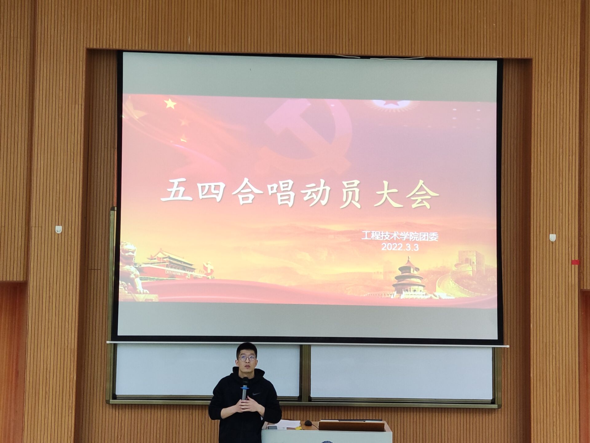 会议初始,徐凯迪老师发表讲话,说明了五四合唱的重要意义,五四合唱是以各学院为单位参赛,主要以合唱为表演形式的校级比赛。五四合唱是对学生进行爱国主义、集体主义和民族精神的生动教育。徐凯迪希望同学能够全身心投入训练中,从而展现工院学子的青春风采。