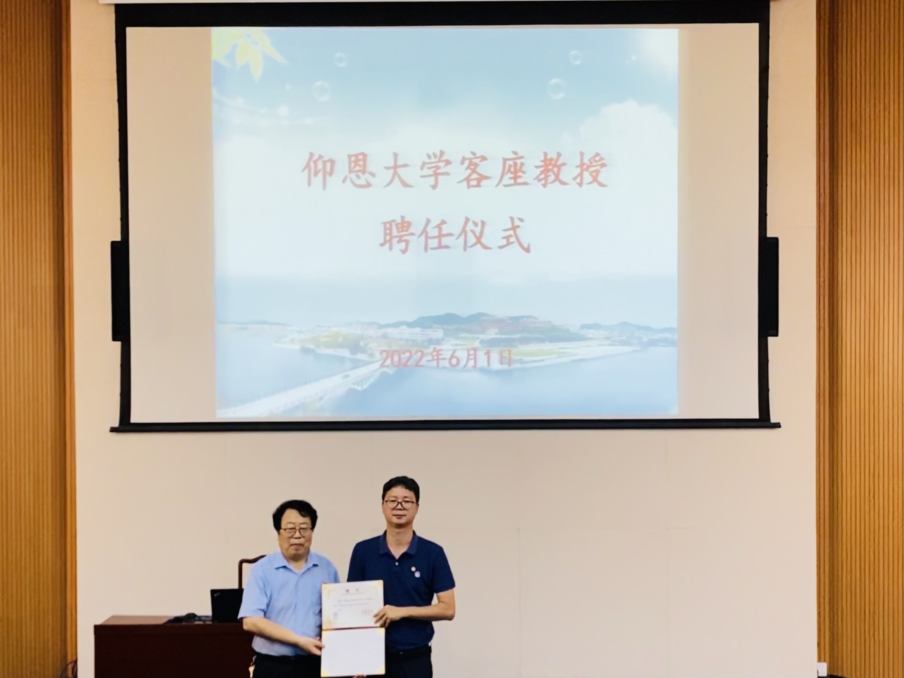 常务副校长魏杨青亲自为林耀进教授颁发客座教授聘书