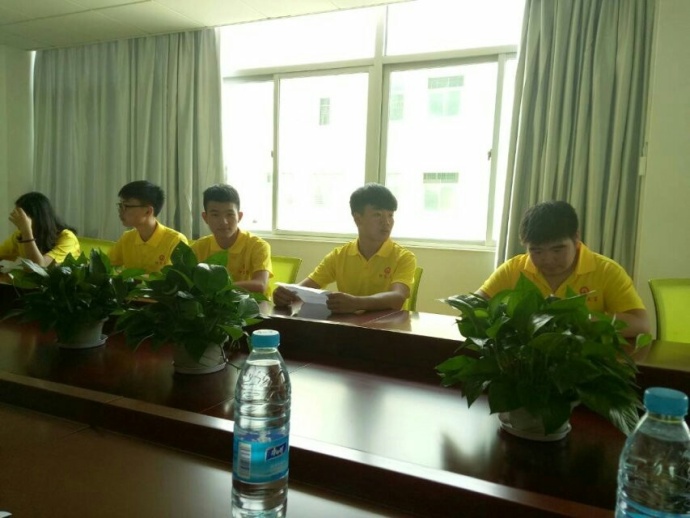 7月8日,暴风雨过后的早晨,“闯出一片天”实践队来到索尔诺家具公司实践基地,公司总经理林国彬带领大家参观了工厂,初步了解工厂的运营模式。登记完入职信息后,大家一起接受了实习前的培训。