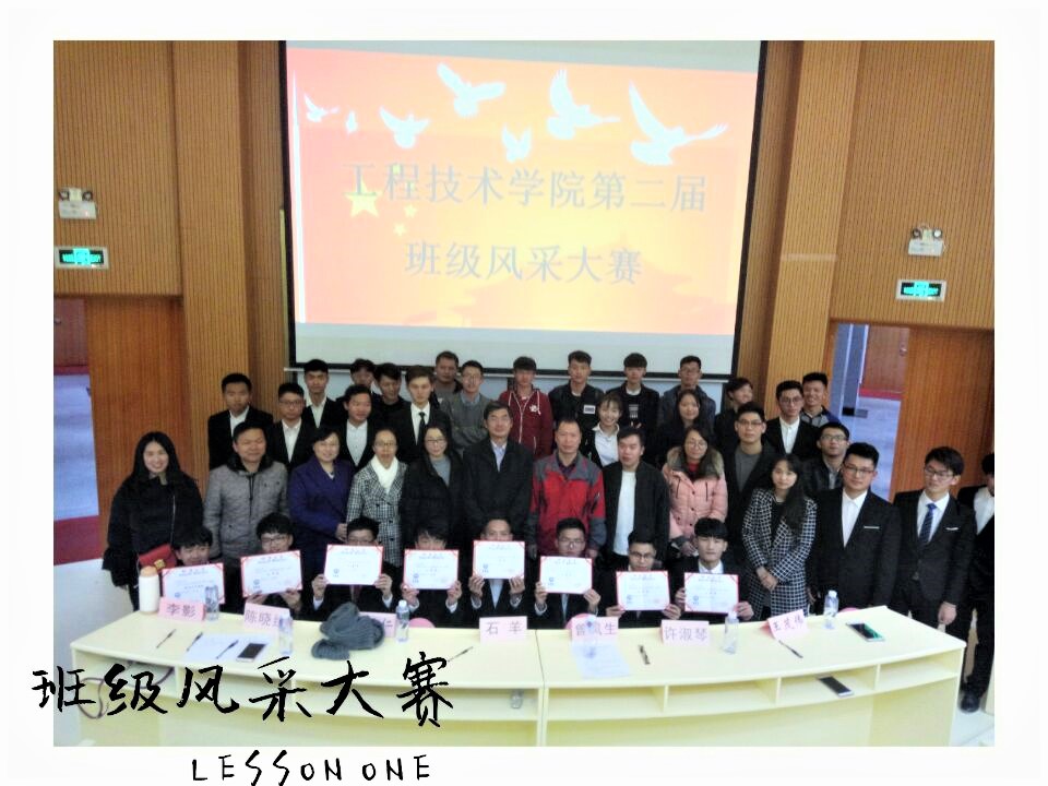 大赛在曾凤生书记的致辞和全场的热烈掌声中拉开帷幕。此次比赛以“青春筑梦十九大,接力奋斗新时代”为主题,共分为“班级风采展示”以及“展示效果”两部分,各班以组织及制度建设,包括班级学风、班级活动、班级精神面貌、班级文化建设及班级校内干部任职情况。