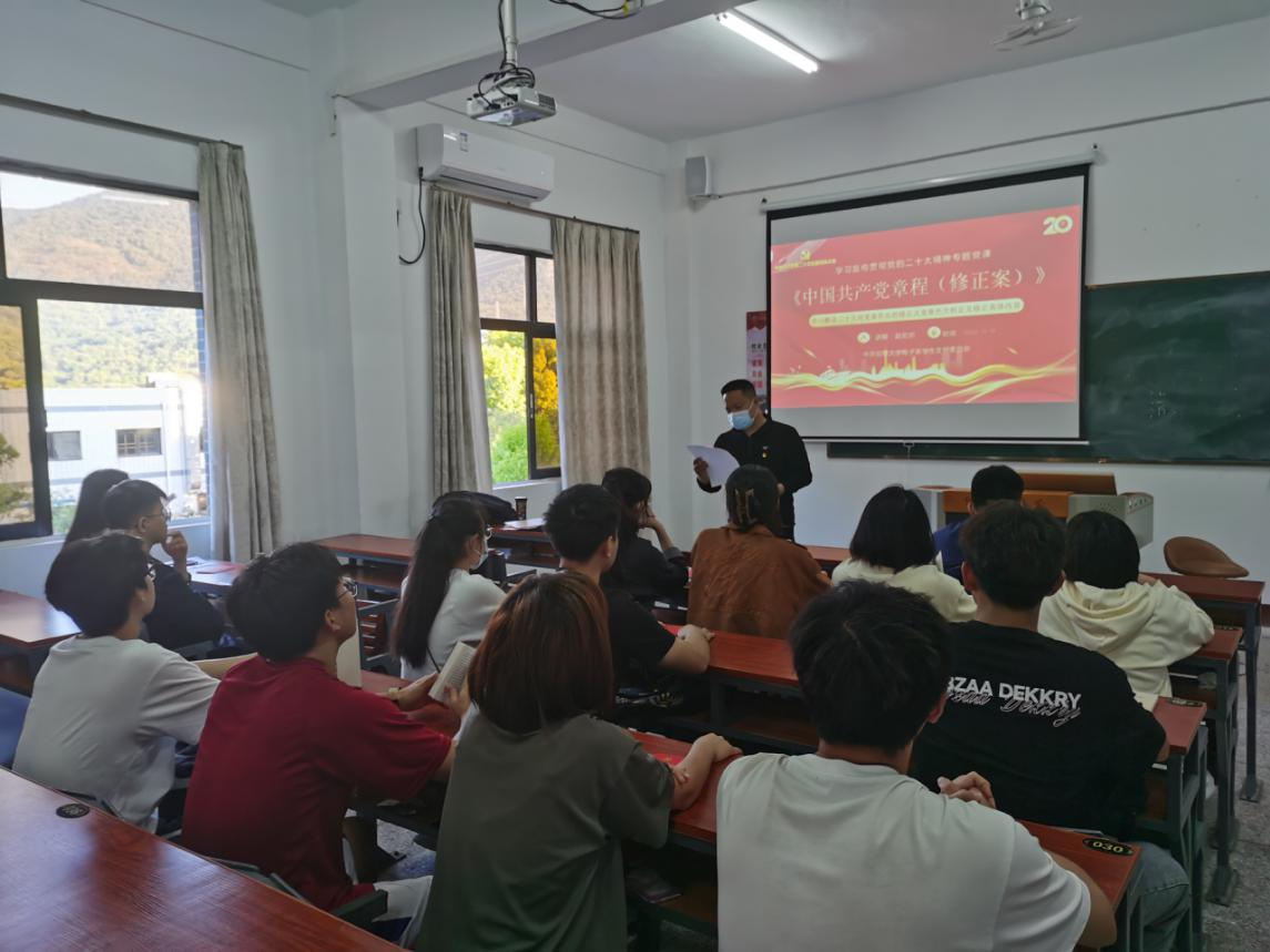 2022年11月10日,中共taptap点点电子系学生支部委员会开展围绕学习贯彻党的二十大精神,以《二十大对党章作出的修正》为题的专题党课。支部全体党员出席,会议由支部书记赵宏岩同志主持。
