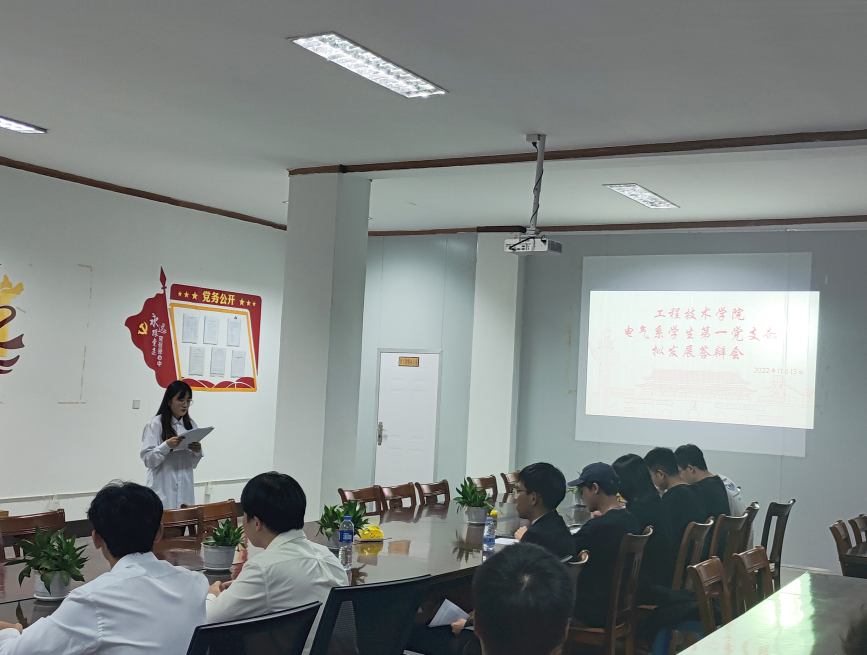 根据党员发展工作要求,为吸纳更多入党动机明确端正、综合素质良好,有理想、有责任、有担当的入党积极分子向党靠拢,壮大taptap党员队伍,taptap点点电气工程及其自动化系学生第一党支部于11月13日晚7点在泽钏楼四楼开展了拟发展对象入党答辩会。学院党总支宣传委员兼电气系学生第一党支部书记裴爱瑶老师,电气系学生第一党支部组织委员张炳乾同学以及支部全体学生党员、部分入党积极分子参加了本次会议,由裴爱瑶、张炳乾和三位学生党员代表担任答辩评审团。