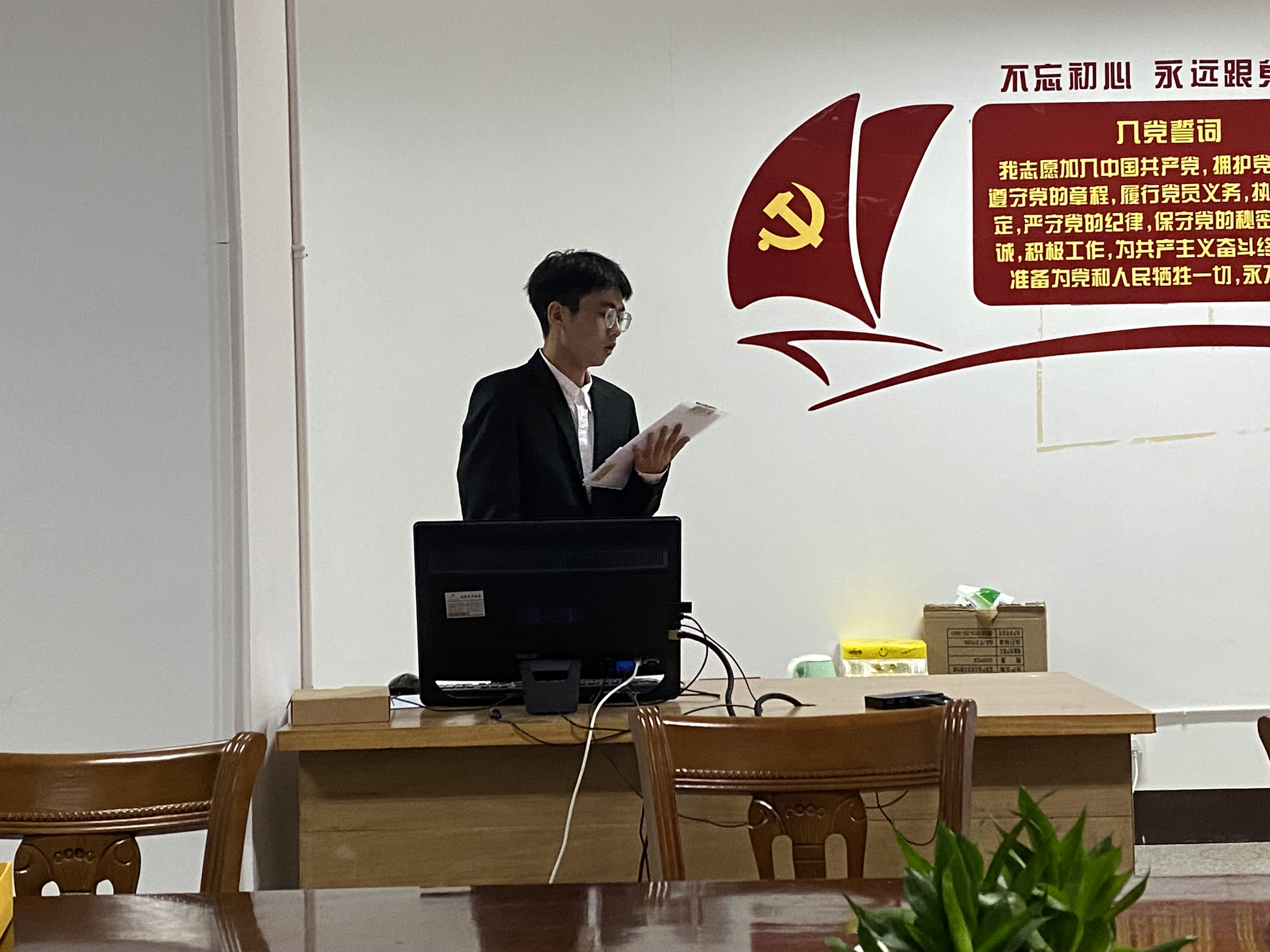 9名参加此次答辩的入党积极分子依次上台,从入党动机、个人思想、学习、工作和生活等方面进行阐述和汇报,同时也明确指出了自己仍需改进的不足之处。每位入党积极分子阐述个人情况后,提前抽取党史知识必答题进行回答,由主持人从题库中时政选答题现场作答,随后由答辩评审团的老师结合党的理论知识和具体案例随机对入党积极分子进行提问并打分。