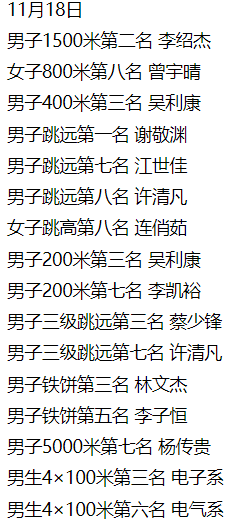 短跑比赛中,速度与激情延伸。百米赛道上,随着一声号令枪响,林伟锋、吴利康、杨嘉然如旋风般急速奔出,奋力拼搏,赢得一声声加油喝彩的呐喊。