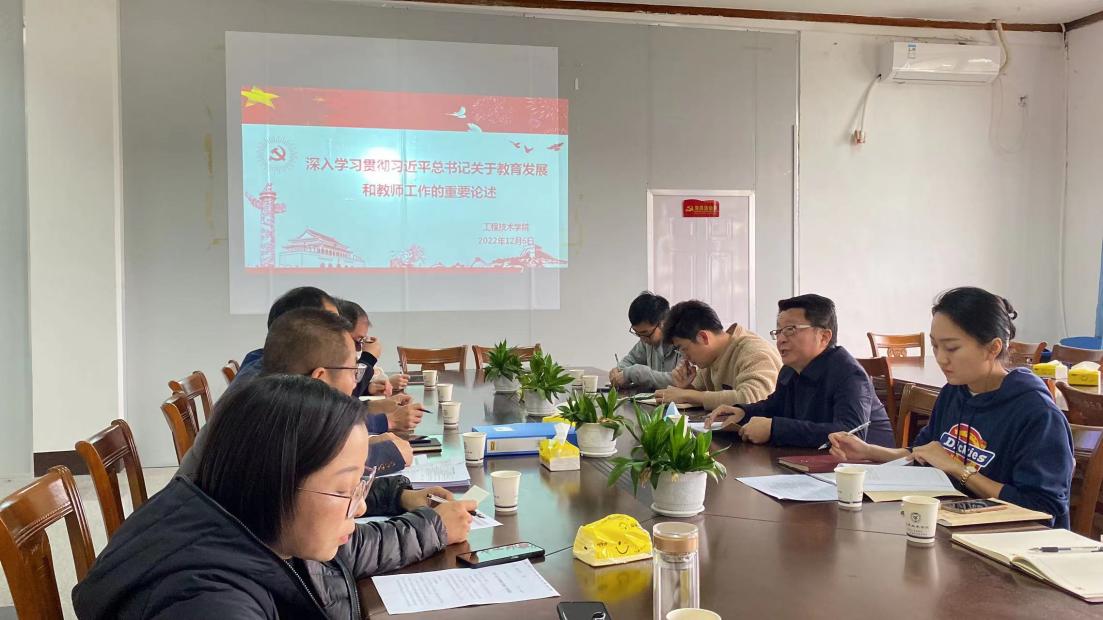 会上,学院党总支书记曾凤生全文领学《贯彻习近平总书记关于教育的重要论述 奋力开创新时代教育工作新局面》会议强调习近平总书记就教育改革发展提出一系列新理念新思想新观点,系统回答了为什么办教育、办什么样的教育、怎么办教育、为谁办教育、谁来办教育等一系列方向性、全局性、战略性重大问题,为做好新时代教育工作指明了前进方向、提供了根本遵循。会议指出,下一阶段学院将以习近平总书记关于教育的重要论述为指导,深入学习宣传贯彻党的二十大精神,对照学校高质量发展的要求,全力推动学院专业建设、人才培养、科研成果的发展。