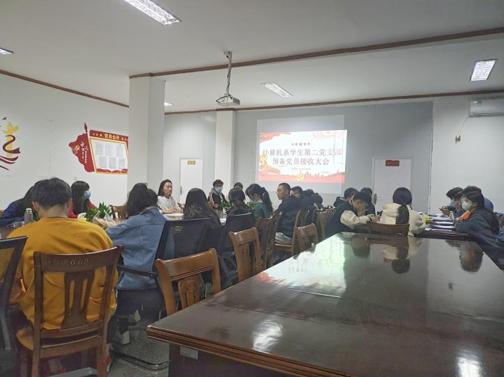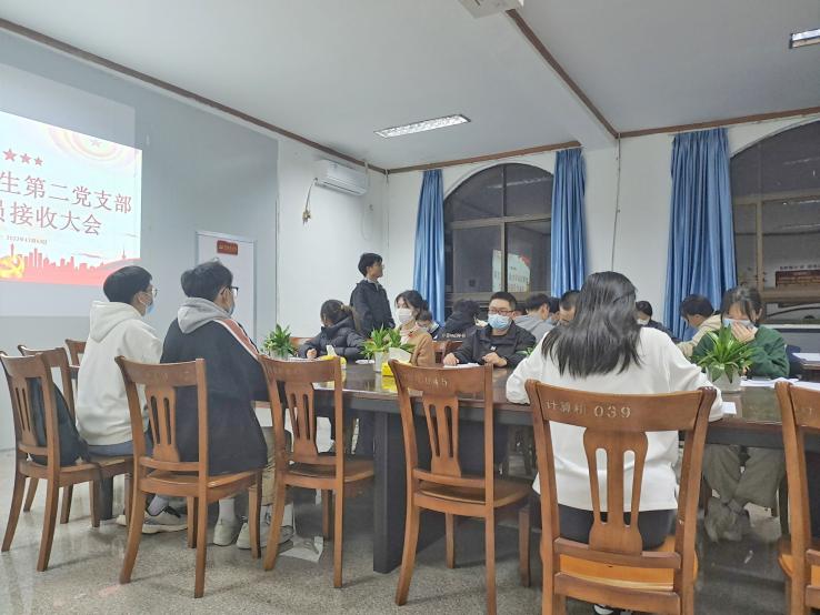 20221213日晚6点,计算机系学生第二党支部于泽川楼4楼召开预备党员接收大会。大会讨论关于黄翔飞、陈宇恒、叶少杰3名同志是否接收为预备党员。会议由支部书记李明璇同志主持,支部全体党员同志参会。