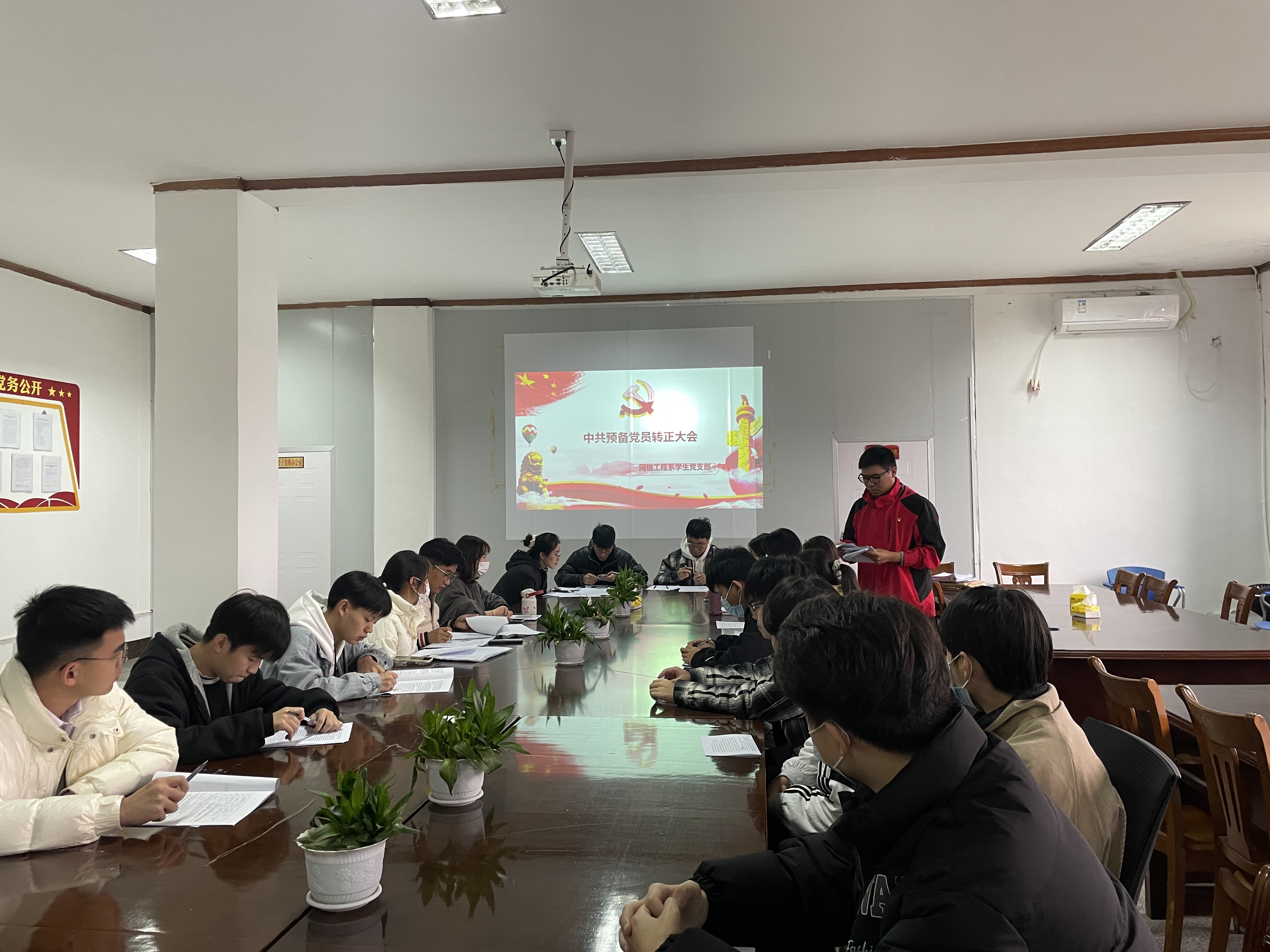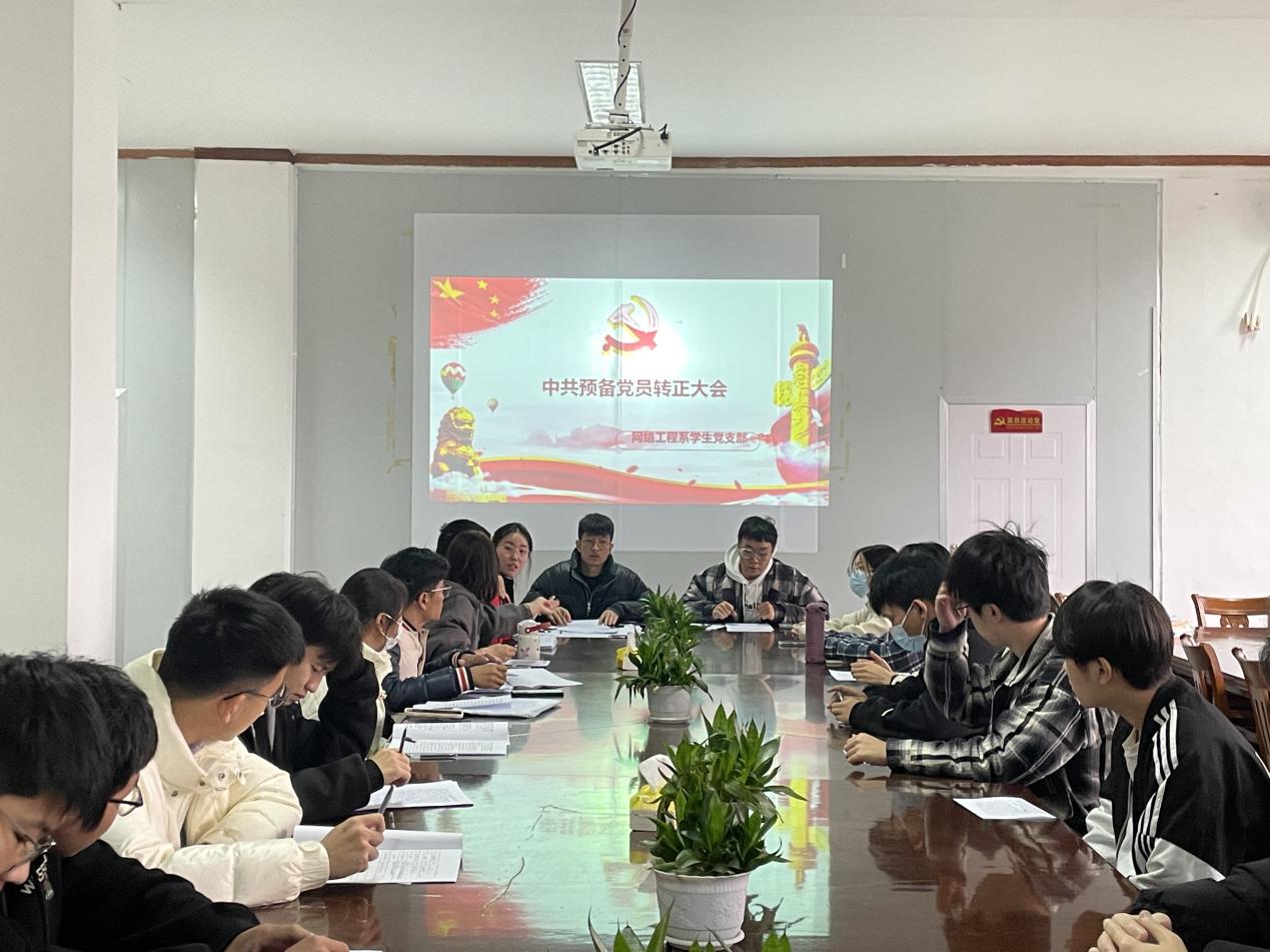 为进一步加强党支部建设,壮大党员队伍,提升党员素质水平,2022年12月13日下午14时,网络工程系学生党支部于泽川四楼会议室召开预备党员转正支部大会。本次会议由网络工程系学生党支部书记徐凯迪主持,支部全体党员参会。