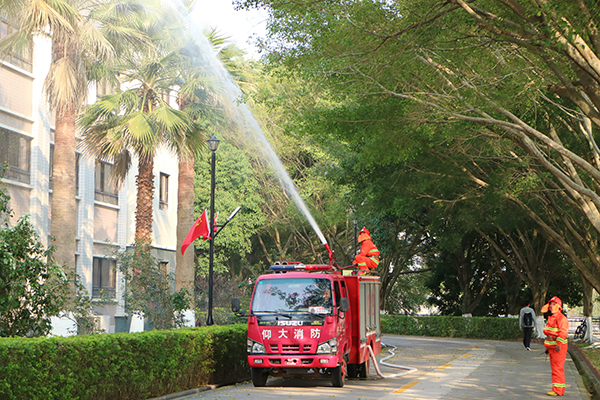 消防疏散演练以实验室线路老化,引起火灾为背景,内容包括逃生演练、消防灭火排烟、医疗救护等环节。随着现场阵阵浓烟升起,本次消防演练拉开了帷幕。值班安保人员发现火情后,迅速通知校园110联动指挥中心。指挥中心立即启动应急预案,通知校微型消防站、雏鹰应急处置分队、校医务所迅速前往灾现场,并通知马甲消防救援站前往支援。同时,工作人员组织学生用湿毛巾捂住口鼻,弯腰,分别从正、侧门撤离至湖边舞池安全地带。雏鹰应急处置分队队员负责引导学生有序撤离火灾现场,并为现场拉起警戒线。校医务所工作人员对受伤学生进行医疗救护。最终,在校微型消防站和马甲消防救援站共同配合下,火情成功解除。在此次演练过程中,学生听从指挥,沉着应对,有条不紊地撤离现场,在多方校园力量的配合下,此次消防演练圆满结束。演练后,消防员为taptap师生详细讲解灭火器材使用方法,并组织师生进行了灭火器扑灭初期火灾实操练习。