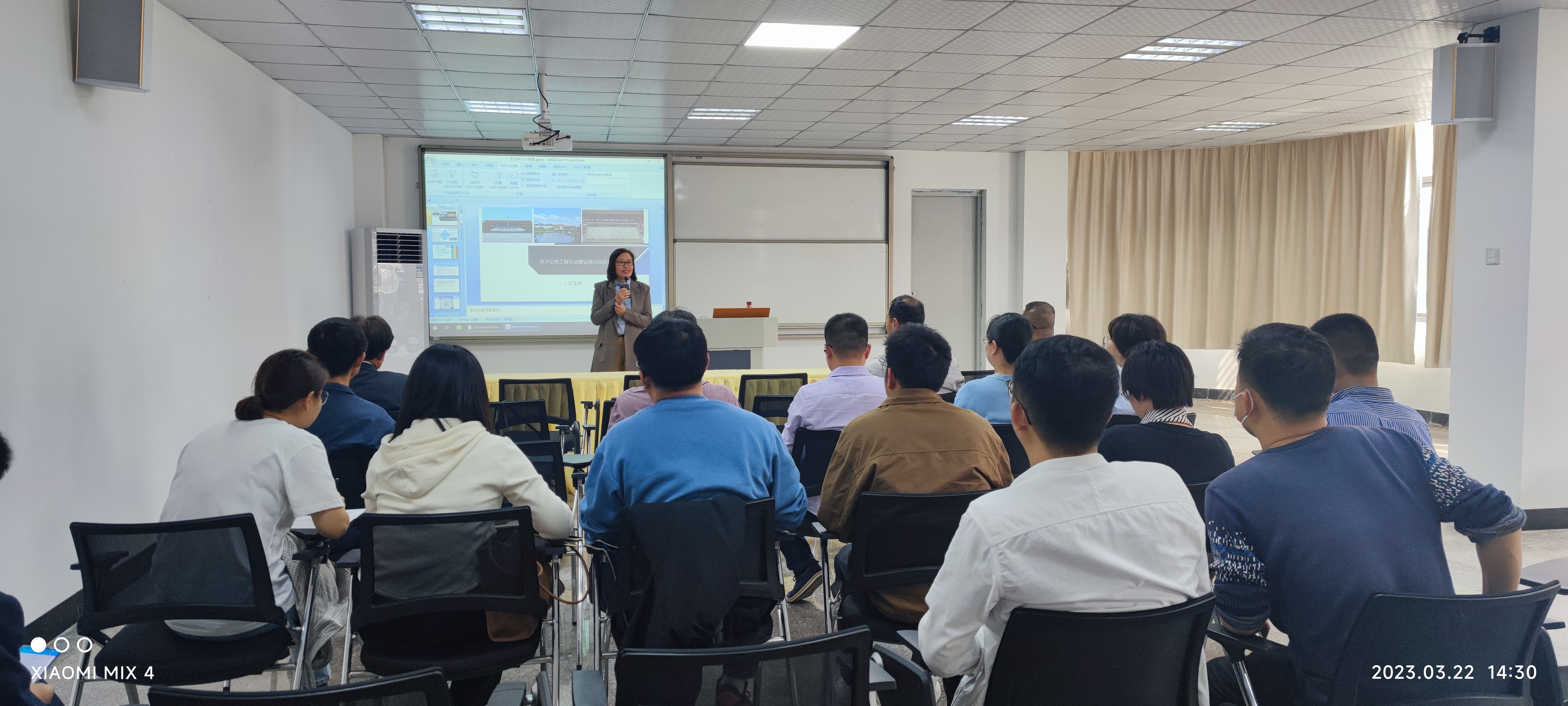 3月22日下午,中国计量大学王玉华教授在新区图书馆学术报告厅开展题为“电子信息工程专业建设探讨及科研项目”的学术讲座,taptap电子系、电气系全体教师到场聆听。