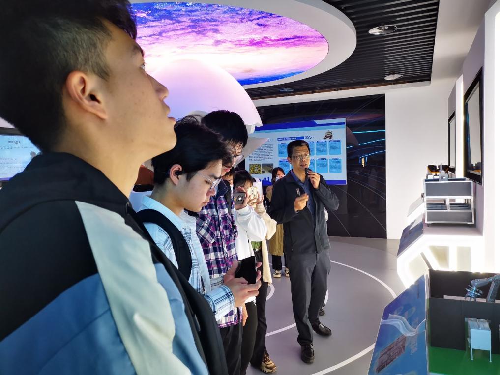 泉州天九孵化器管理有限公司创业导师金哲、王劲戎带领同学们参观了泉州数字经济产业园展厅并做详细讲解。