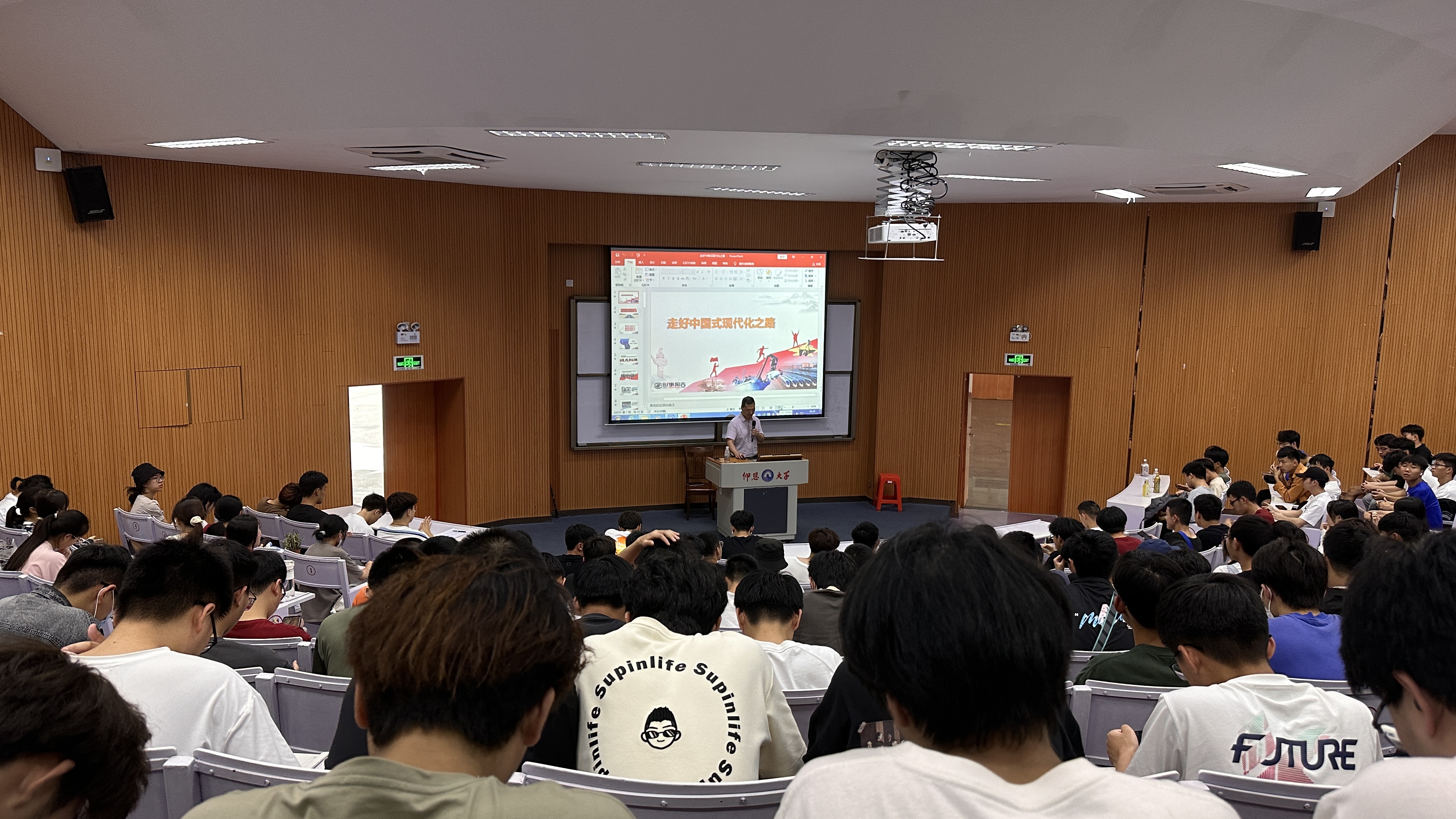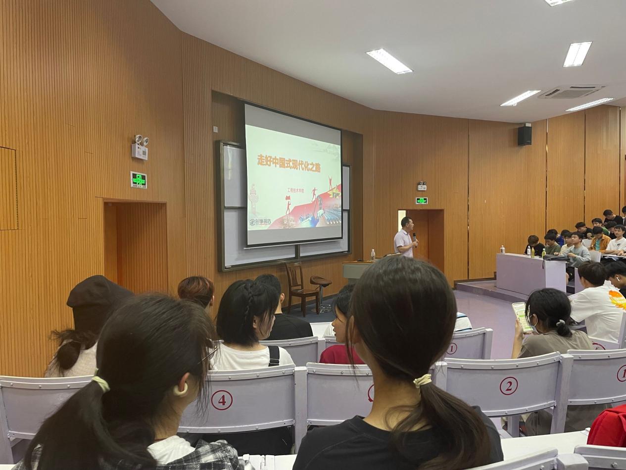 讲座中,曾凤生以“走好中国式现代化之路”为题,从“接续奋斗,追求千年梦想”“立足国情,开辟全新道路”“凝心聚力,推进复兴伟业”等方面深刻分析了中国式现代化这条道路,不仅走得对、走得通,而且也一定能够走得稳、走得好。他带领同学们回顾了自1840年鸦片战争以来,实现中华民族伟大复兴,就成为中国人民和中华民族最伟大的梦想;中国共产党的成立,深刻改变了近代以后中华民族发展的方向和进程,深刻改变了中国人民和中华民族的前途和命运;中国共产党成立100周年取得的非凡成就和丰功伟绩,激发同学们对中国特色社会主义道路自信、理论自信、制度自信、文化自信。