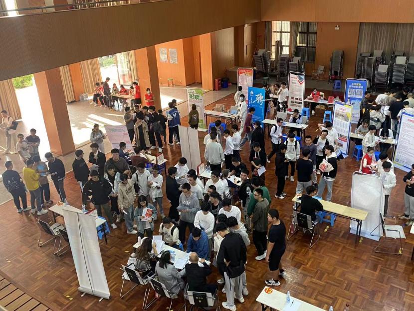此次招聘会由taptap点点承办,597直聘协办,共有30余家用人单位进校招才引智,涵盖研发技术、技术运营、后端开发、工艺工程等多个类别,为taptap毕业生提供近三百个优质工作岗位,岗位需求与工程技术学院相关专业匹配度高。招聘会现场气氛浓厚,同学们手持自己精心准备好的简历,满脸自信地穿梭于人流之中,积极与招聘人员沟通,主动了解用人单位情况。