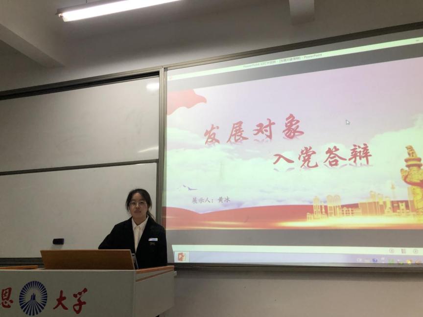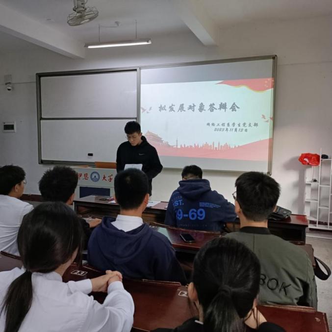网络工程系学生党支部于2023年11月13日在第三教学区仰恩教学楼a2-101召开拟发展对象入党答辩会。本次会议由网络工程系学生党支部书记徐凯迪主持,宣传委员林正滨和全体党员参加会议,积极分子列席观看。