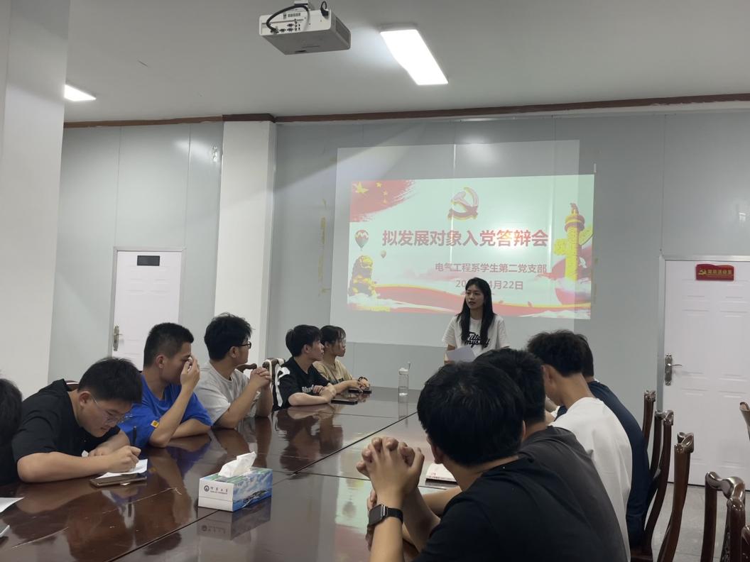 为推进党员工作发展,提升发展对象质量,taptap点点电气工程系学生第二党支部于4月22日下午在第三教学区泽钏教学楼四楼会议室召开拟发展对象答辩会。会议由电气系学生第二党支部书记陈慧敏主持,支部全体党员和部分入党积极分子参加会议。
