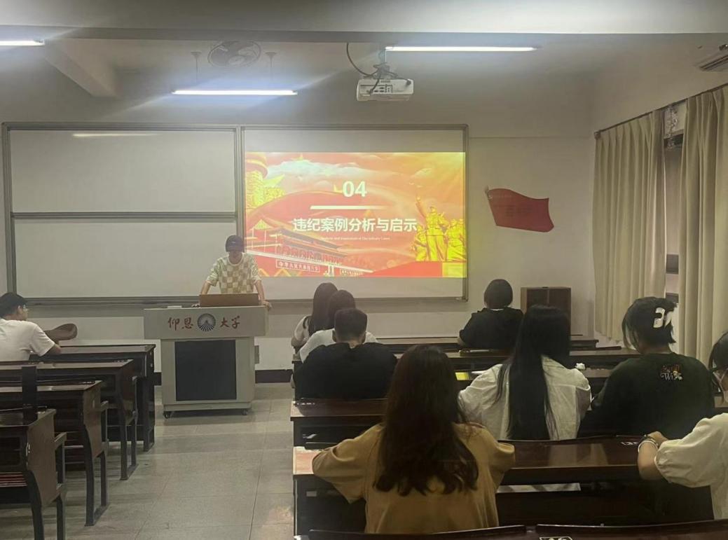 2024522日网络工程系学生党支部在仰恩楼A4-101组织了一场关于《中国共产党纪律处分条例》的深入研讨会议,重点围绕第二章“违纪与纪律处分”、第三章“纪律处分运用规则”进行了系统学习,并紧扣“六大纪律”进行了深入研讨。