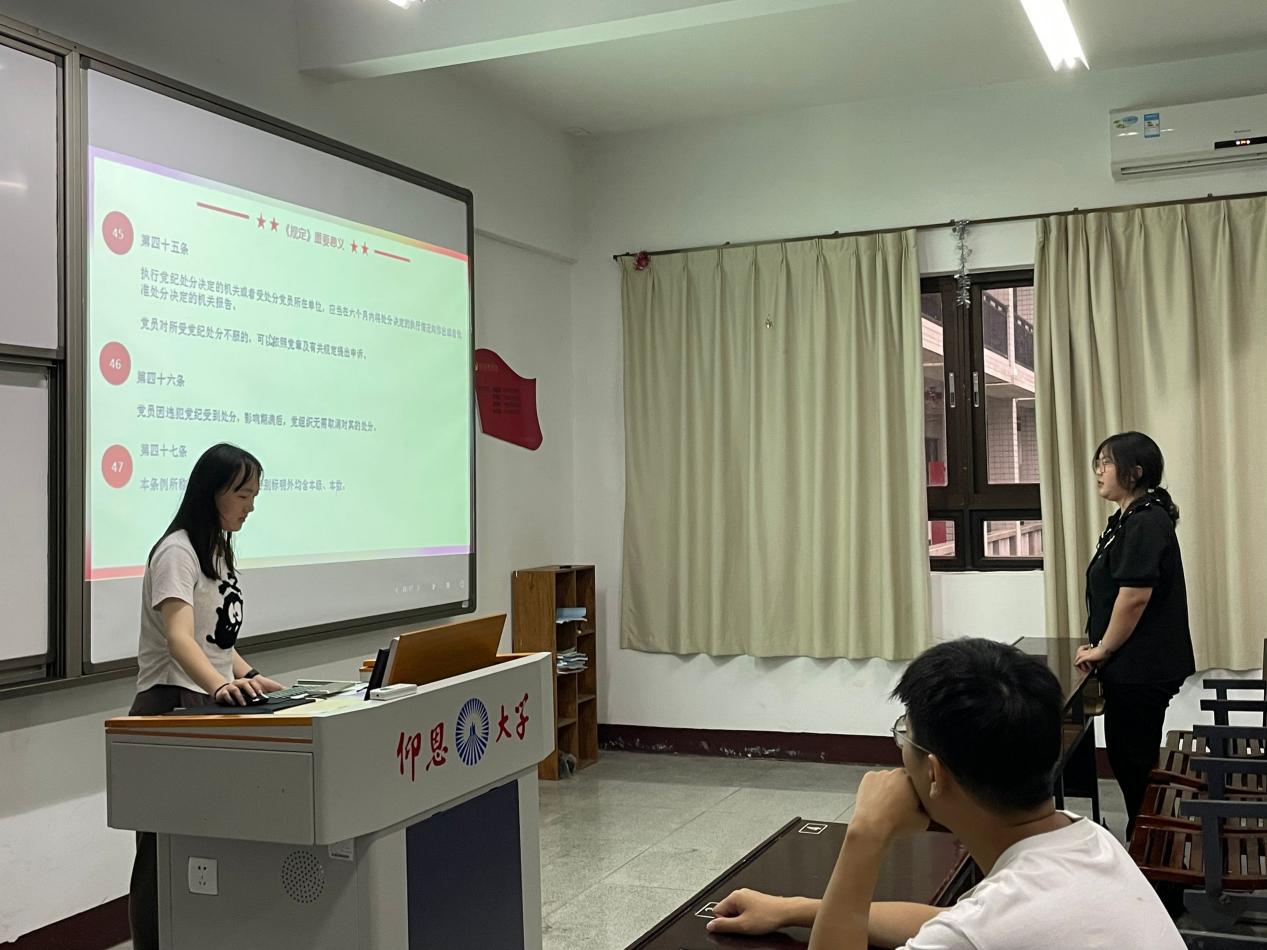 为进一步增强党员的纪律意识和规矩意识,0529日,网络工程系学生党支部在仰恩楼A4-101开展党纪学习会,支部全体党员参加,特向大家传达相关精神,这一学习活动不仅是对党员个人素质的提升,更是对全面从严治党要求的深入贯彻。
