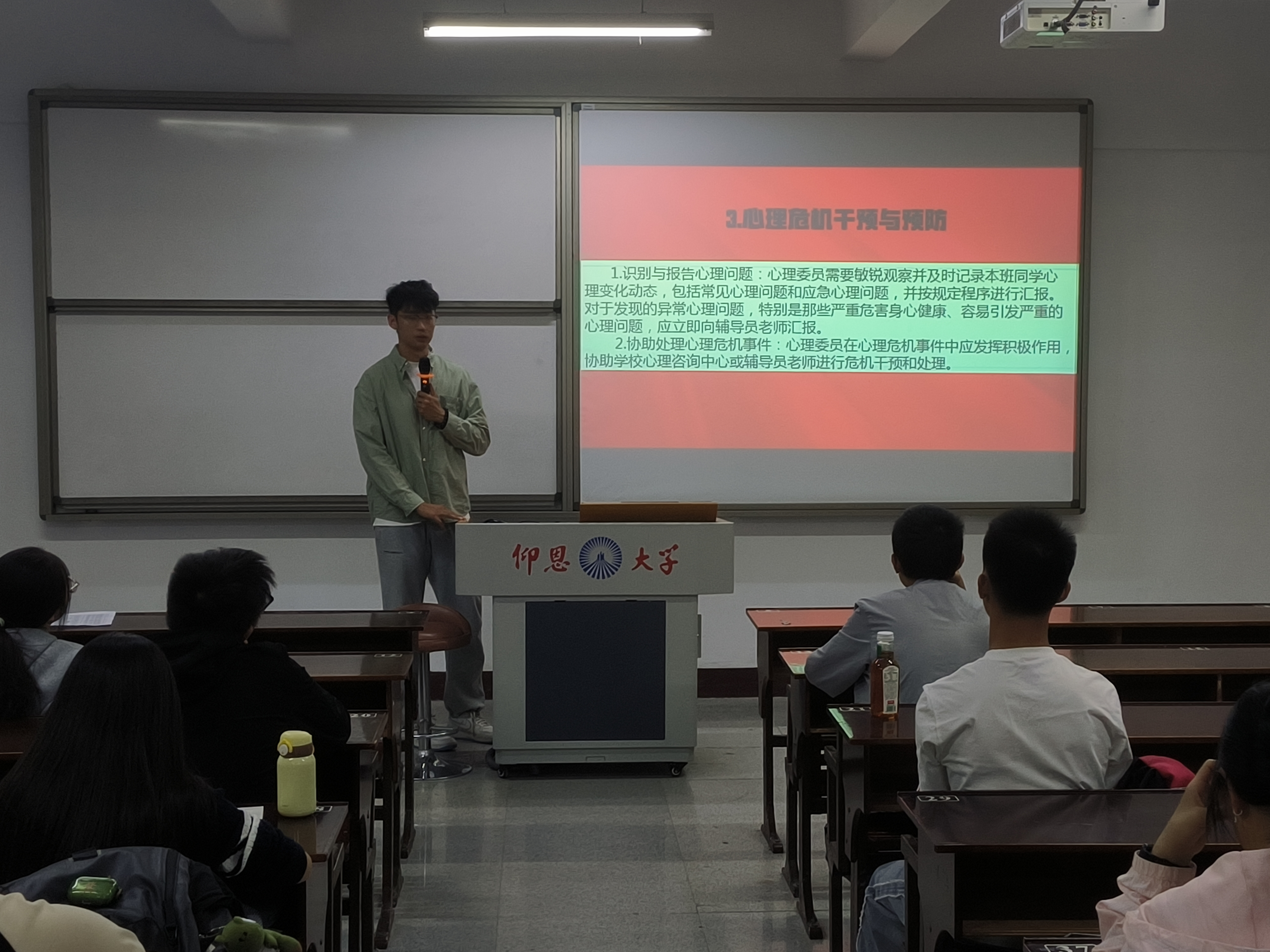培训过程中,老师结合实际情况,向心理委员们传授了实用的工作方法和技巧。强调要做好对同学隐私的保密工作。同时,鼓励心理委员们积极在班级中营造关注心理健康的良好氛围。
