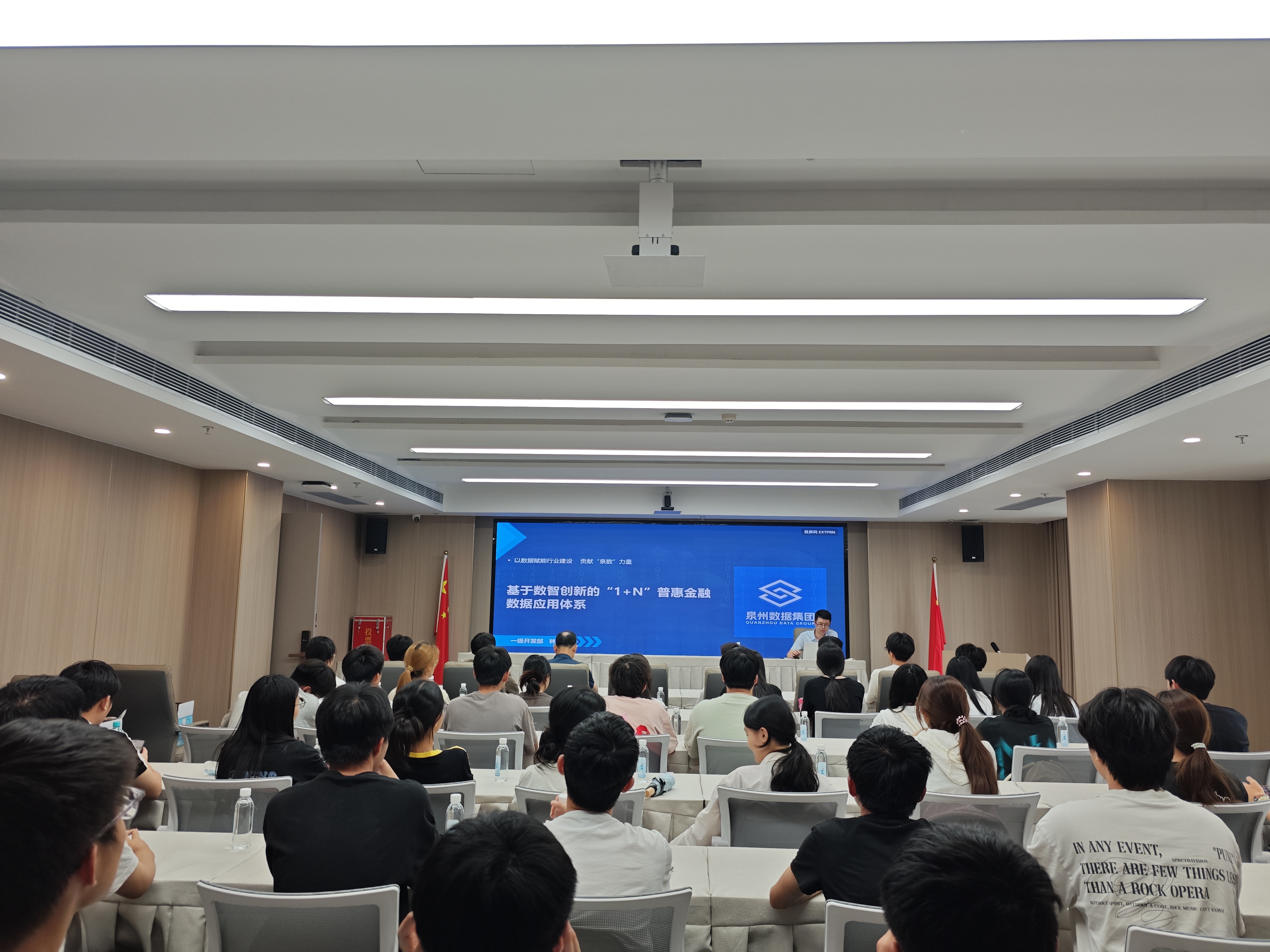 随后,泉州数据集团郭经理和林经理围绕 “基于数智创新的‘1+N’普惠金融数据应用体系” 作专题报告,从技术架构搭建到金融场景落地实践,深度剖析数智技术在普惠金融领域的创新应用路径,为师生们带来前沿专业知识与行业动态。