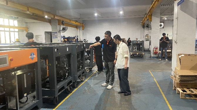 泉州华德机电设备有限公司总负责人高荣海对李影一行表示欢迎,并介绍了企业发展历程、企业文化、核心产品及人才需求。他指出,随着中国工业迈入节能与智造新时代,公司坚持以科技创新为发展驱动力,恪守“为伙伴创造一流生态圈,为客户锻造一流产品,为员工打造一流平台,为社会缔造一流服务”的经营理念。为此,公司持续重金投入研发,升级产品线,致力于打造智慧化、集成化、数据驱动的工厂,实现产品全生命周期管理,旨在为客户提供更节能、更环保、更智能的空气压缩系统解决方案。