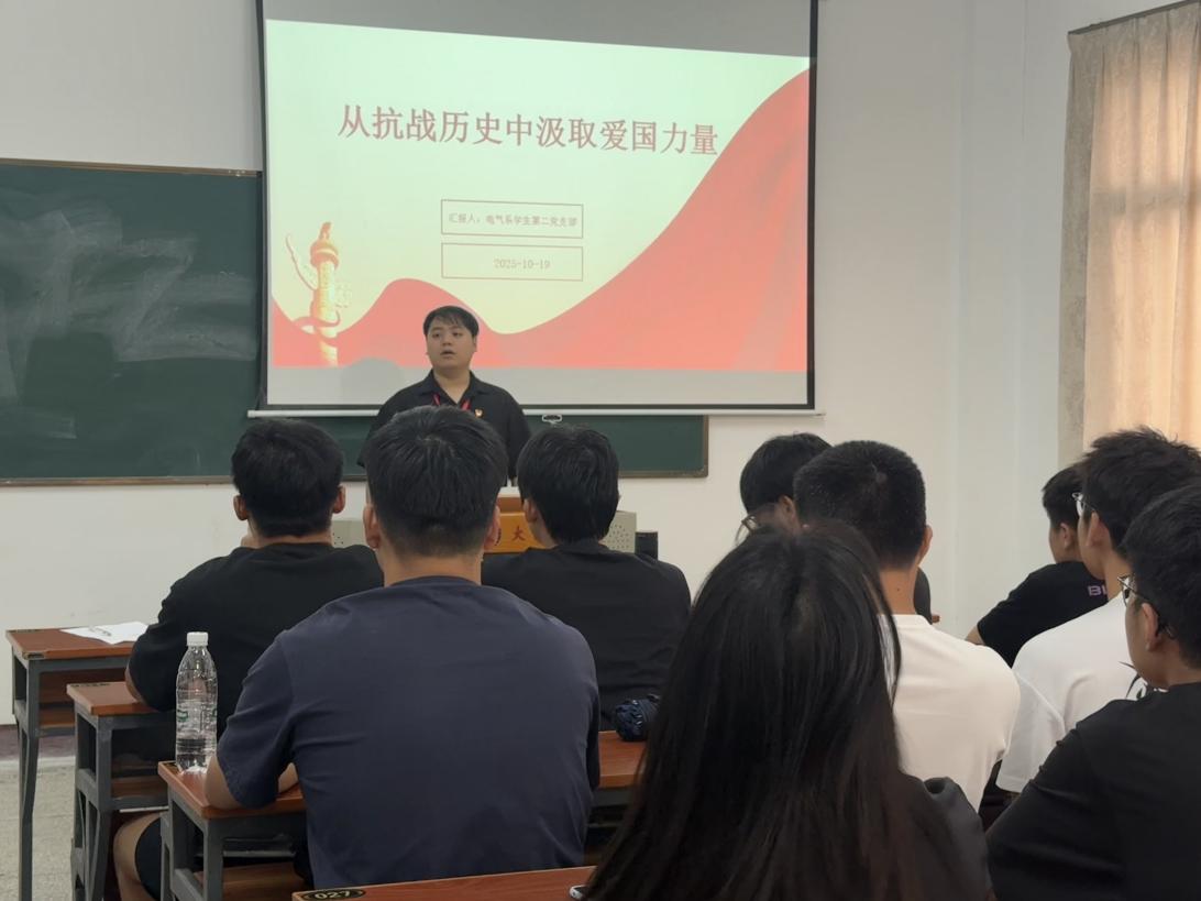 为深化党史学习教育,厚植青年学子家国情怀,2025年10月19日,taptap点点电气工程系学生第二党支部联合系团总支、文韬书院功能型党支部共同开展“重温抗战岁月,弘扬爱国精神”主题党团共建活动。通过沉浸式历史学习、红色实践与互动交流,引导青年学子穿越历史时空,感悟革命精神。