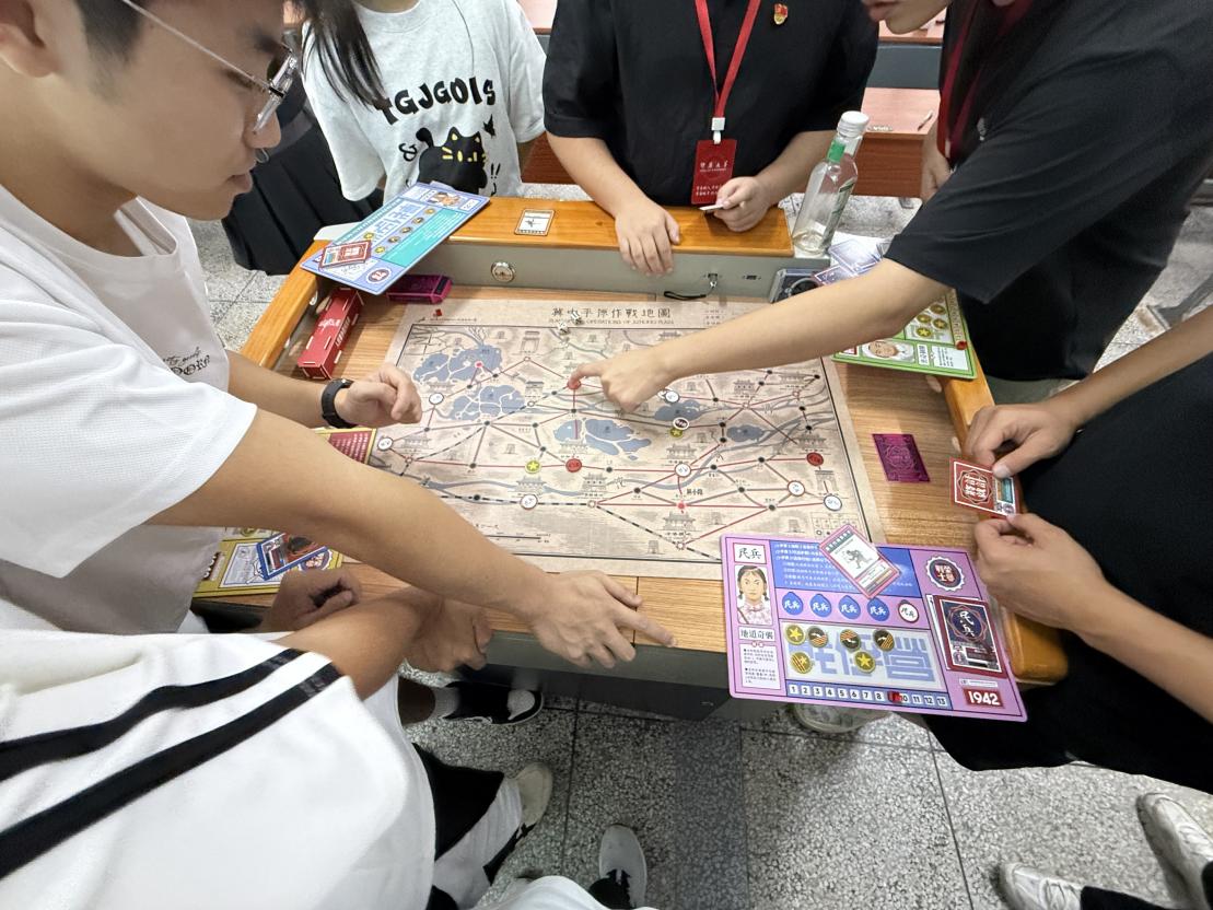 作为本次活动的创新亮点,“抗战主题桌游体验”环节将历史教育转化为沉浸式实践。活动以红色桌游游戏为互动载体复刻抗战历史,同学们分组扮演八路军、新四军等角色,通过战略部署、资源调配、战役模拟等环节,身临其境感受抗日军民的智慧与团结,促进同学们在完成“抗日决策任务”中提升协作能力,凝聚团结力量。