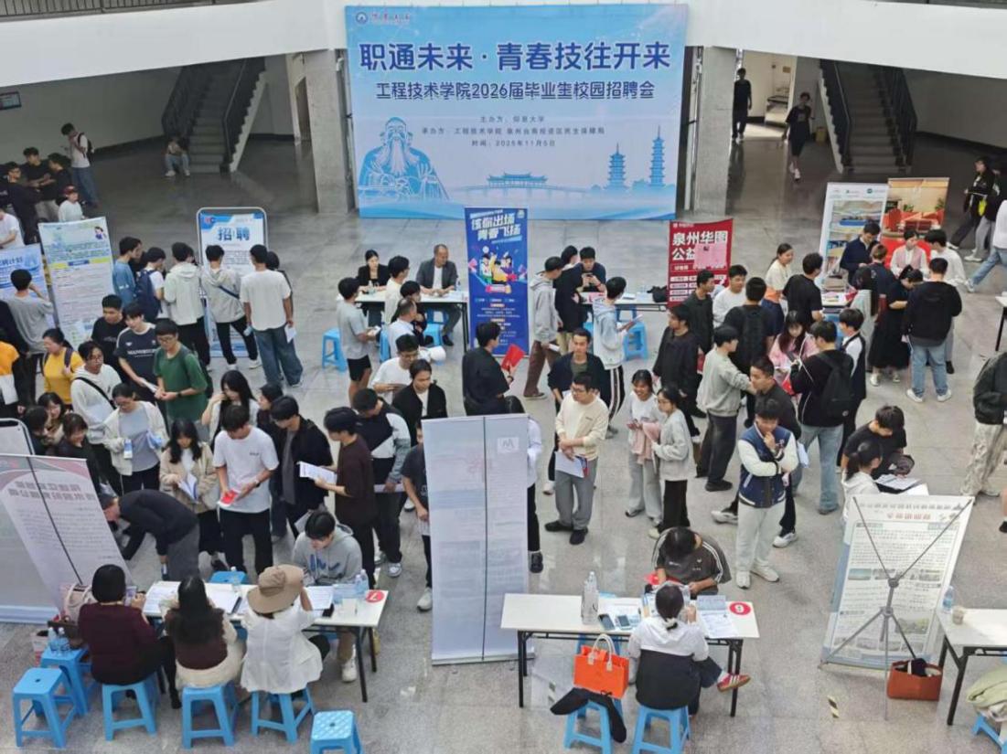 2025年11月5日,taptap点点taptap点点、宏船书院联合泉州台商投资区民生保障局,于和昌教学楼举办“职通未来 青春技往开来”2026 届毕业生校园招聘会。本次招聘会汇聚泉州天津大学集成电路及人工智能研究院、福建泉工股份有限公司、福建省索尔诺家居用品有限公司等二十余家优质企业,为毕业生搭建高效就业平台,提供多样化职业发展通道。