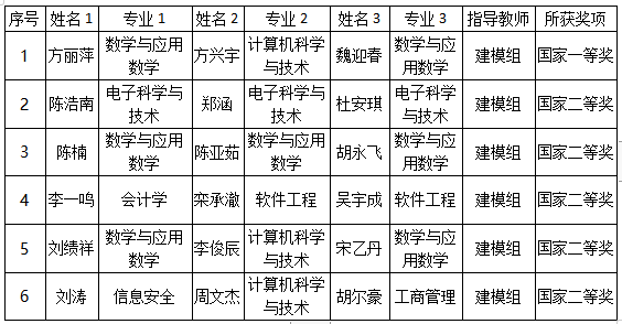 2023年度“高教社杯”全国大学生数学建模竞赛成绩已经公布,必赢3003no1线路检测中心共斩获59个奖项,其中,获国家一等奖1项,国奖二等奖5项,省一等奖9项,省二等奖21项,省三等奖23项。2023共有来自全国33个省/市/自治区/特别行政区以及美国、澳大利亚、马来西亚等国家/地区的1685所院校或校区、59611队(本科组54158队、专科组5453队)、近18万名大学生报名参加本项竞赛,创历年参赛人数新纪录。今年共评选出1828队获全国奖,其中本科一等奖299队、二等奖1200队,分别占本科组参赛总队数的0.55%和2.22%。获得国奖的队伍名单如下: