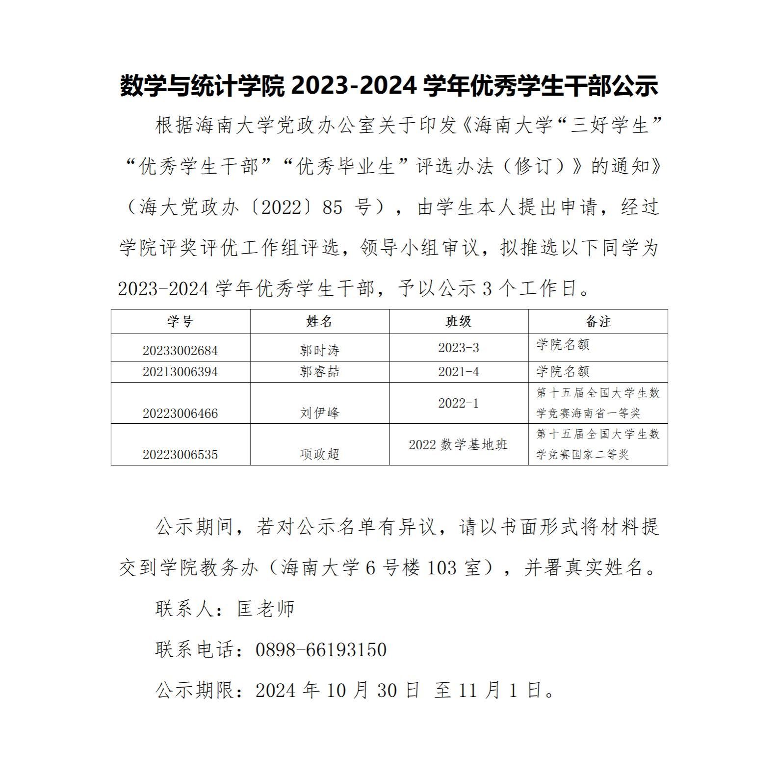必赢3003no1线路检测中心2023-2024学年优秀学生干部公示